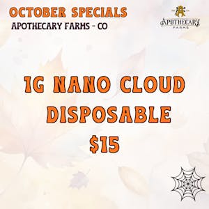 OCT SPECIALS: 1g Nano Cloud Disposables - $15